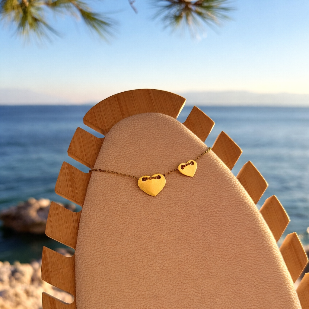The design features two heart charms in different sizes – big heart and small heart – perfect for everyday wear or as a meaningful gift.