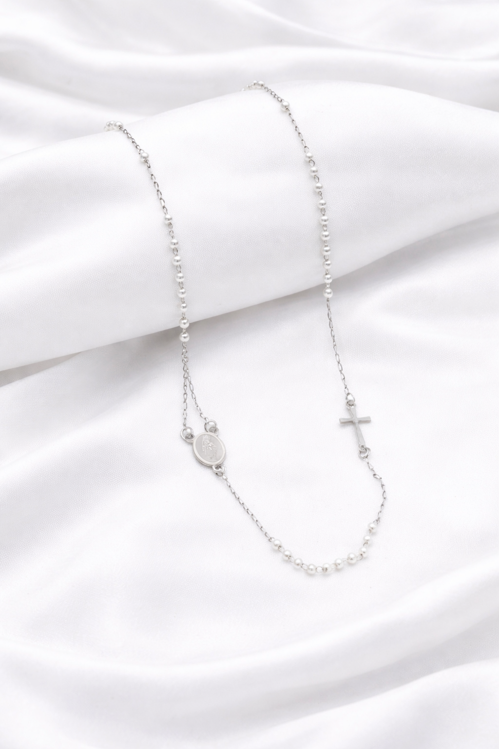 - Krunica ogrlica od nehrđajućeg čelika u srebrnoj boji.