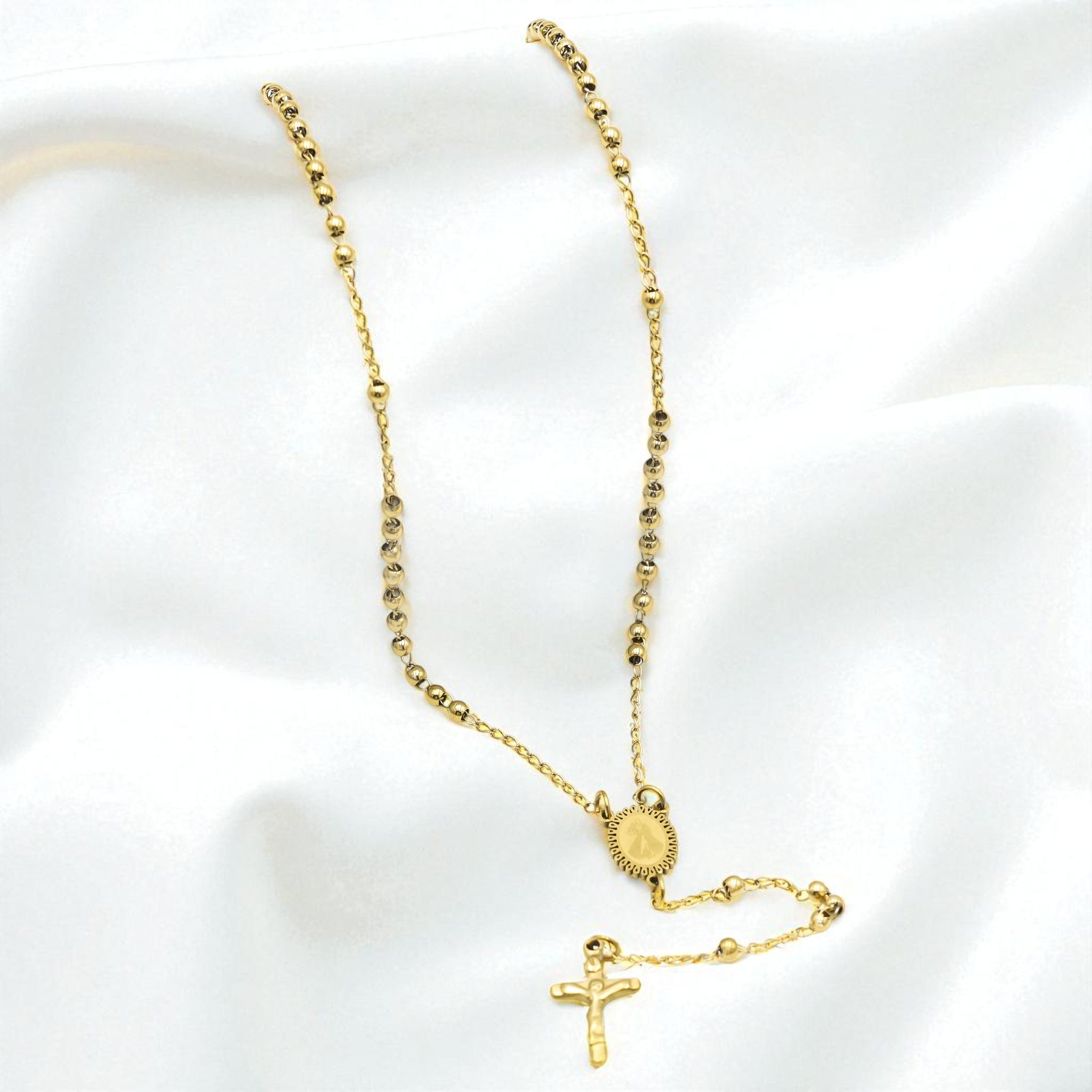 - Krunica od nehrđajućeg čelika u zlatnoj boji.